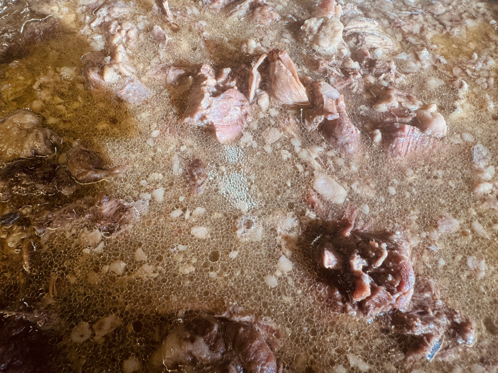 The entire cow’s head is slow-roasted until the meat that surrounds the skull becomes fall-apart tender.